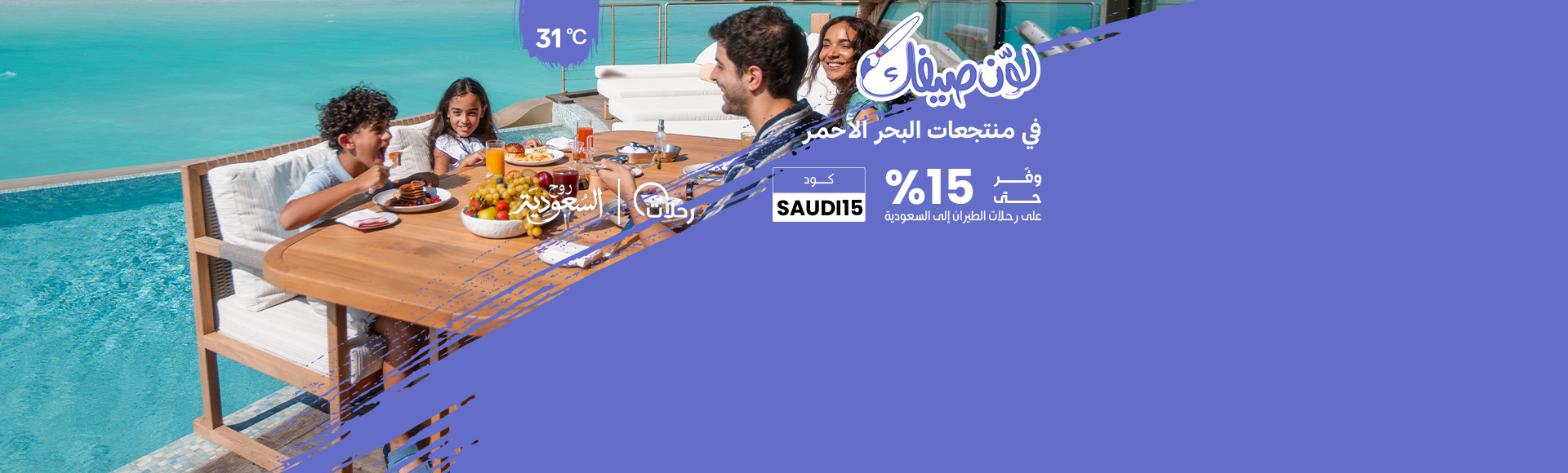 استخدم الكود: SAUDI15 واحصل على خصم حتى ١٥% على رحلات الطيران الدولية.